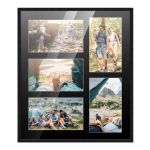 This wood picture frame is available in black, white, gold, silver, natural and dark wood finishes and is perfect for your cherished memories, like a wedding, vacation or birthday. This acid-free mat features 5 openings for 4x6 inch pictures. Pick a black or white acid-free mat to complete your 4 picture collage frame. Included with this collage frame and photo mat is UV acrylic, acid-free backing and hanging hardware for hassle-free displaying!