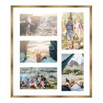 12x14 Gold Wood Collage Frame with a White Mat for 4x6 Pictures