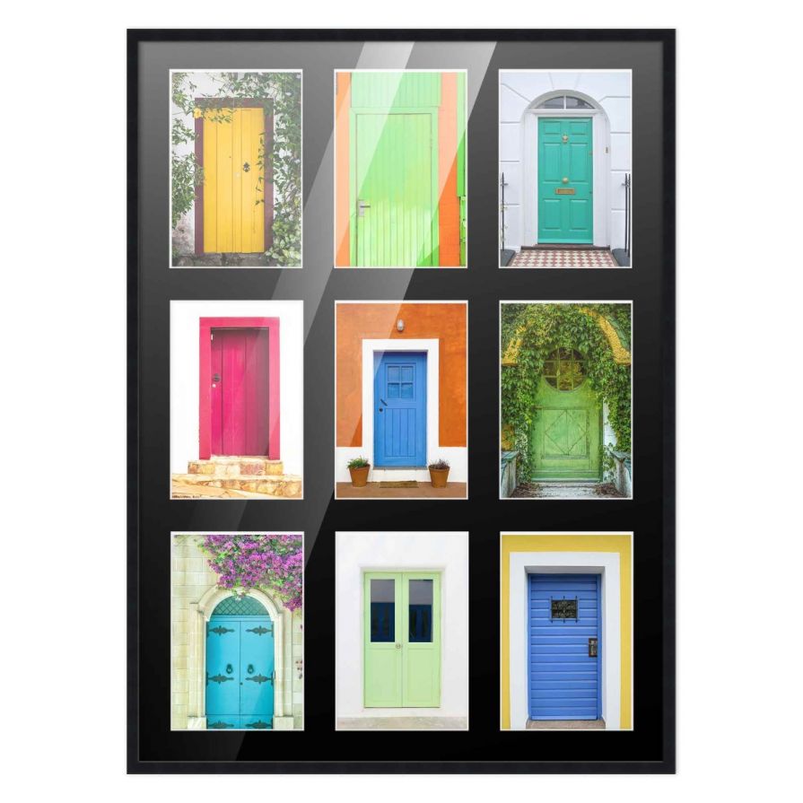 14.5x20.5 Black Wood Collage Frame with Black Mat For 9 4x6 Pictures