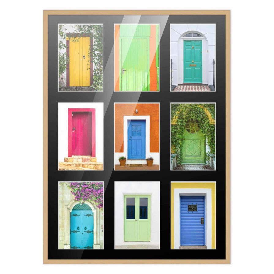 Product Name 14.5x20.5 Natural Wood Collage Frame with Black Mat For 9 4x6 Pictures