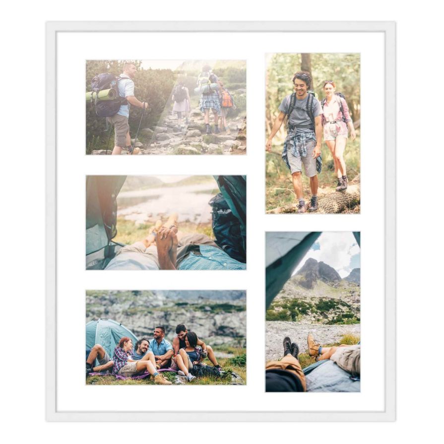This wood picture frame is available in black, white, gold, silver, natural and dark wood finishes and is perfect for your cherished memories, like a wedding, vacation or birthday. This acid-free mat features 5 openings for 5x7 inch pictures. Pick a black or white acid-free mat to complete your 5 picture collage frame. Included with this collage frame and photo mat is UV acrylic, acid-free backing and hanging hardware for hassle-free displaying!