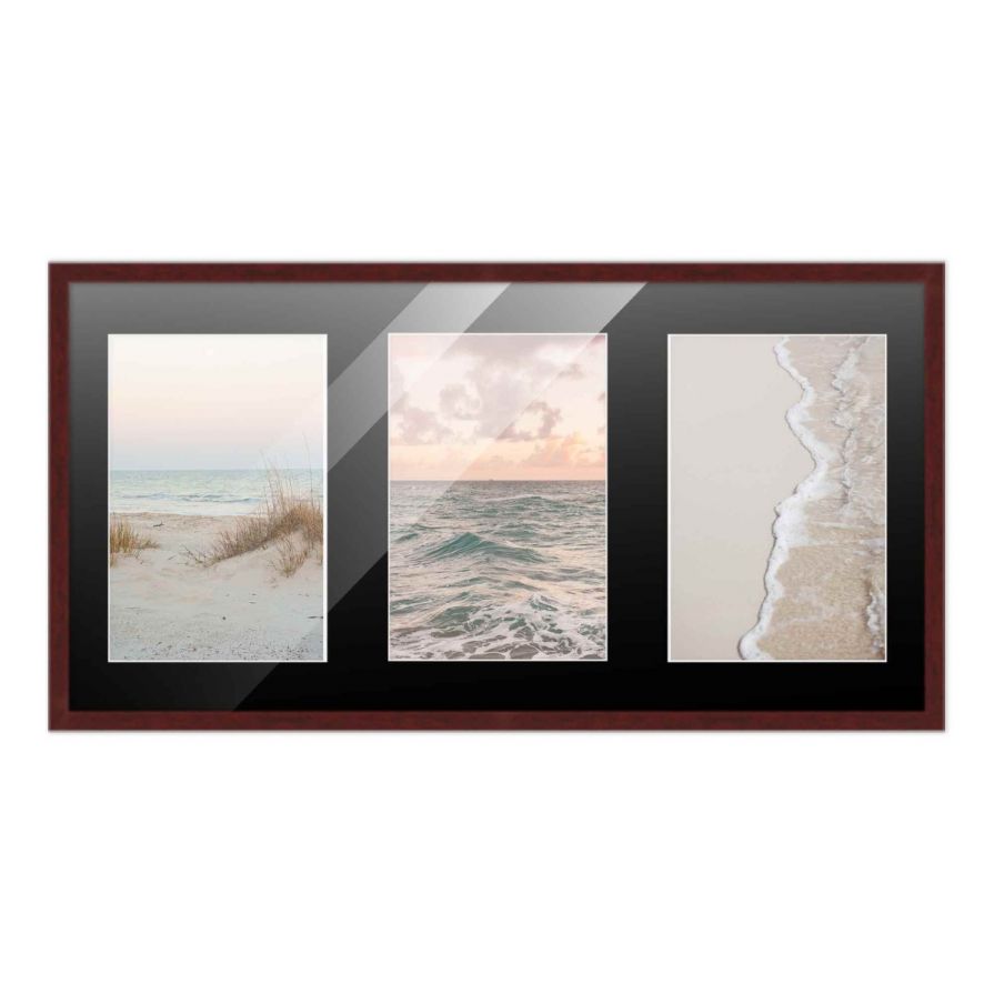 This wood picture frame is available in black, white, gold, silver, natural and dark wood finishes and is perfect for your cherished memories, like a wedding, vacation or birthday. This acid-free mat features 3 openings for 4x6 inch pictures. Pick a black or white acid-free mat to complete your 3 picture collage frame. Included with this collage frame and photo mat is UV acrylic, acid-free backing and hanging hardware for hassle-free displaying!