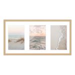 7.5x14.5 Natural Wood Collage Frame with White Mat For 3 4x6 Pictures