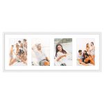 7.5x19 White Wood Collage Frame with White Mat For 4 4x6 Pictures