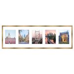 7.5x23.5 Gold Wood Collage Frame with White Mat For 5 4x6 Pictures