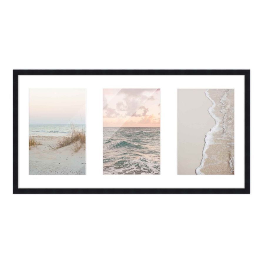 Display your memories in style in this 8.5x17 inch collage picture frame with a beveled mat to display 3 5x7 pictures.