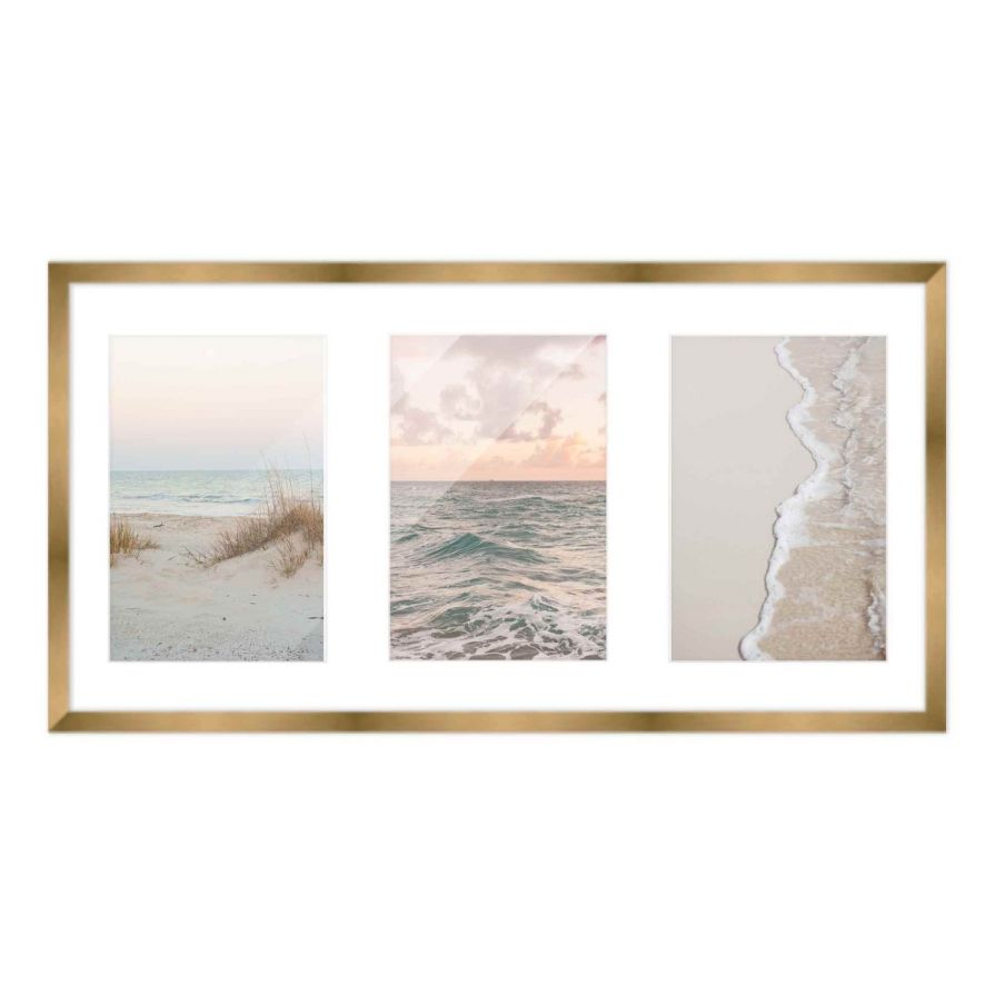 You're reviewing: 8.5x17 Gold Wood Collage Frame with White Mat For 3 5x7 Pictures