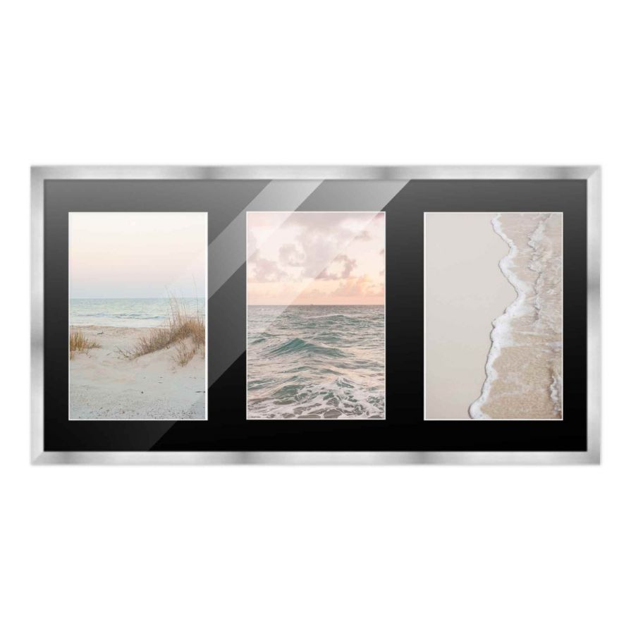 8.5x17 Silver Wood Collage Frame with Black Mat For 3 5x7 Pictures