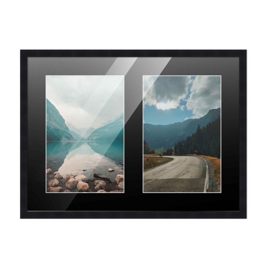 8x10 Black Wood Collage Frame with Black Mat for 2 4x6 Pictures