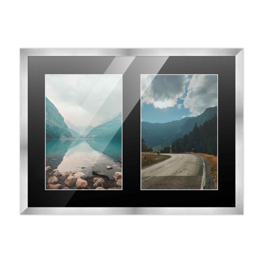 8x10 Silver Wood Collage Frame with Black Mat for 2 4x6 Pictures