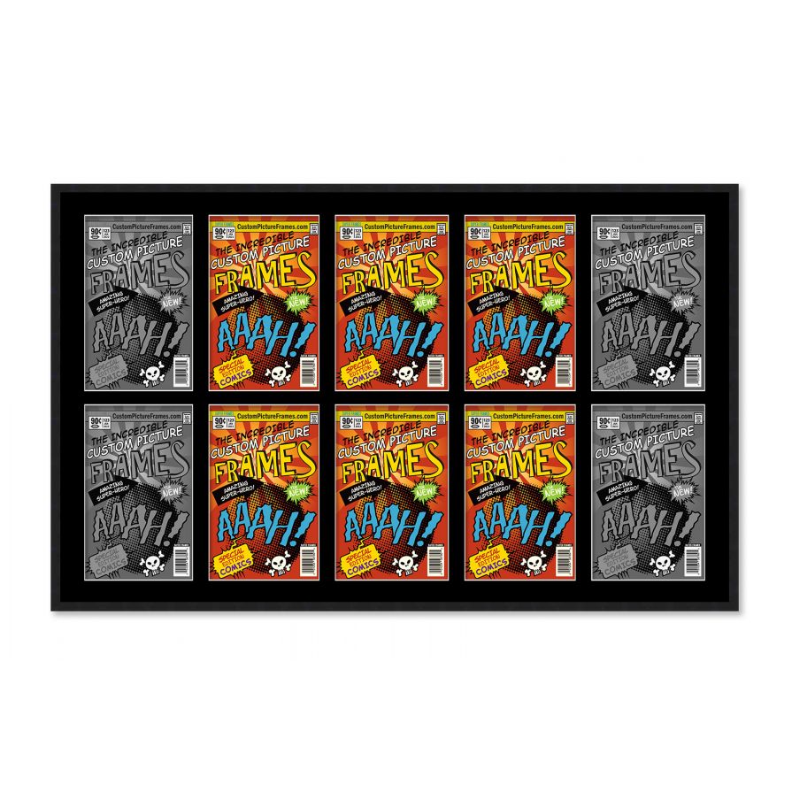 Black Comic Book Frame for 10 Comic Books with Black Mat for Current Age Comic Books
