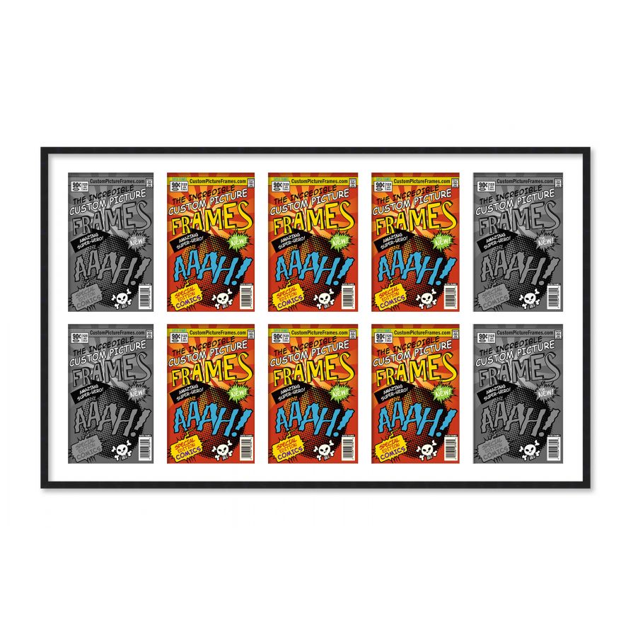 Black Comic Book Frame for 10 Comic Books with White Mat for Current Age Comic Books