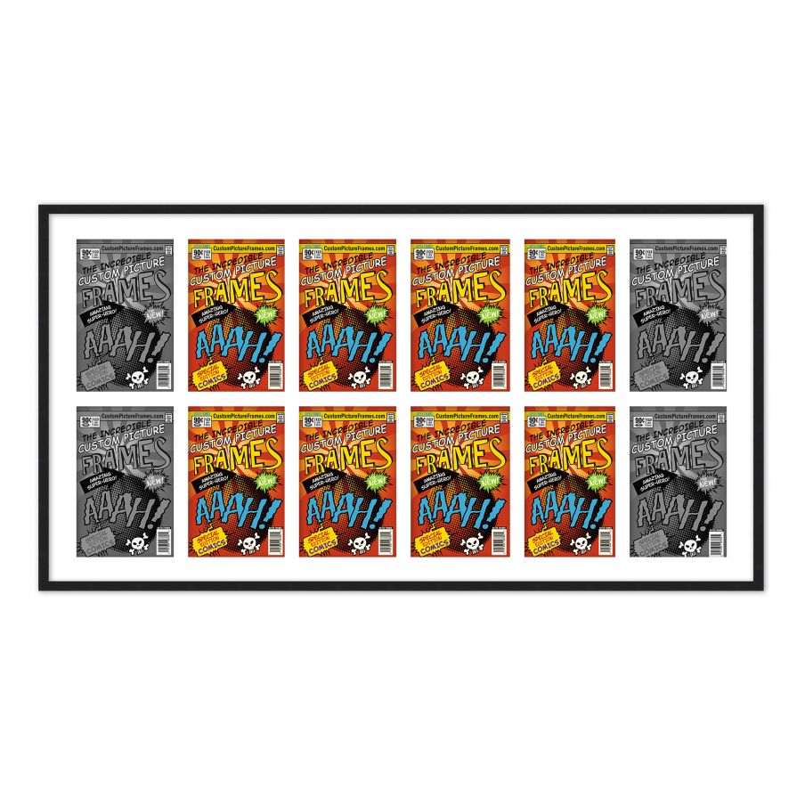 Black Comic Book Frame for 12 Comic Books with White Mat for Current Age Comic Books