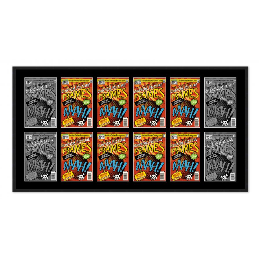 Black Comic Book Frame for 12 Comic Books with Black Mat for Silver Age (Published Between 1956 and 1970) Comic Books