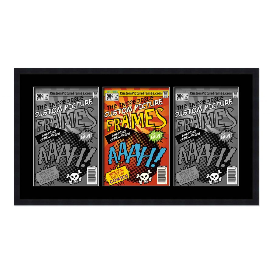 Black Comic Book Frame for 3 Comic Books with Black Mat for Silver Age (Published Between 1956 and 1970) Comic Books