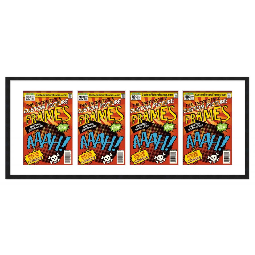 Black Comic Book Frame for 4 Comic Books with White Mat for Silver Age (Published Between 1956 and 1970) Comic Books
