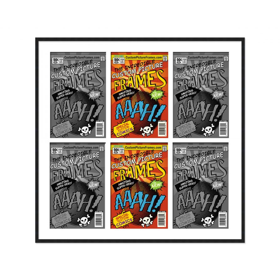 Black Comic Book Frame for 6 Comic Books with White Mat for Silver Age (Published Between 1956 and 1970) Comic Books