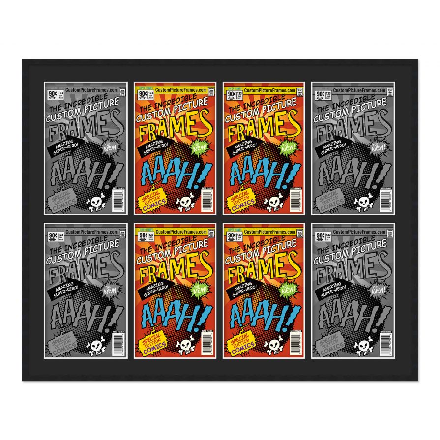 Black Comic Book Frame for 8 Comic Books with Black Mat for Silver Age (Published Between 1956 and 1970) Comic Books