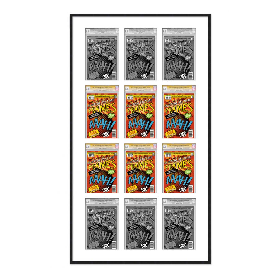 Black Graded Comic Book Frame for 12 Comic Books with White Mat