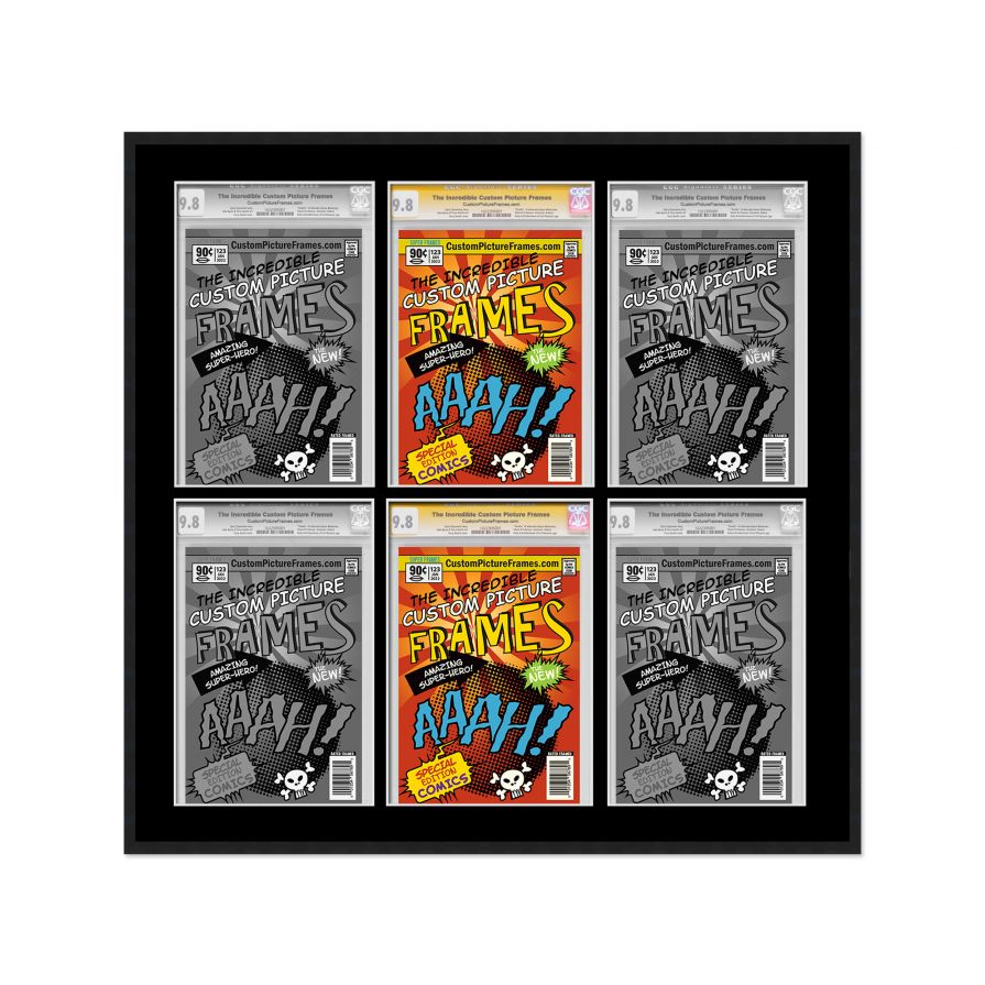 Black Graded Comic Book Frame for 6 Comic Books with Black Mat