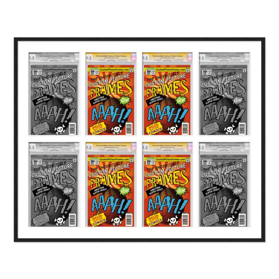 Black Graded Comic Book Frame for 8 Comic Books with White Mat