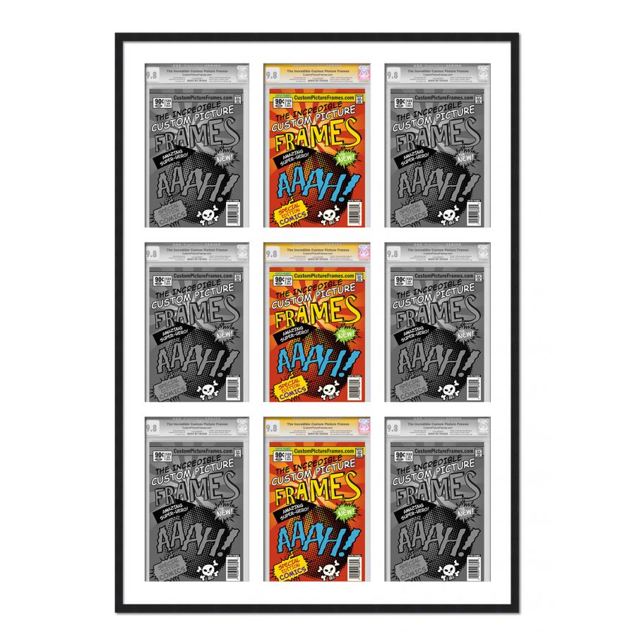 Product Name Black Graded Comic Book Frame for 9 Comic Books with White Mat