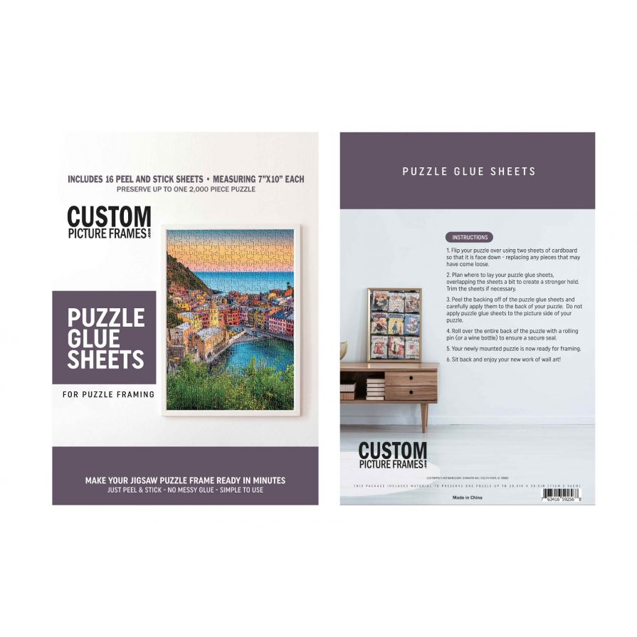 Made of solid wood, this black backloading jigsaw puzzle frame includes UV-resistant acrylic to protect and preserve your puzzle, foam board backing, wall hanging hardware and puzzle glue sheets. Install the hanging hardware to display this puzzle frame vertically or horizontally.