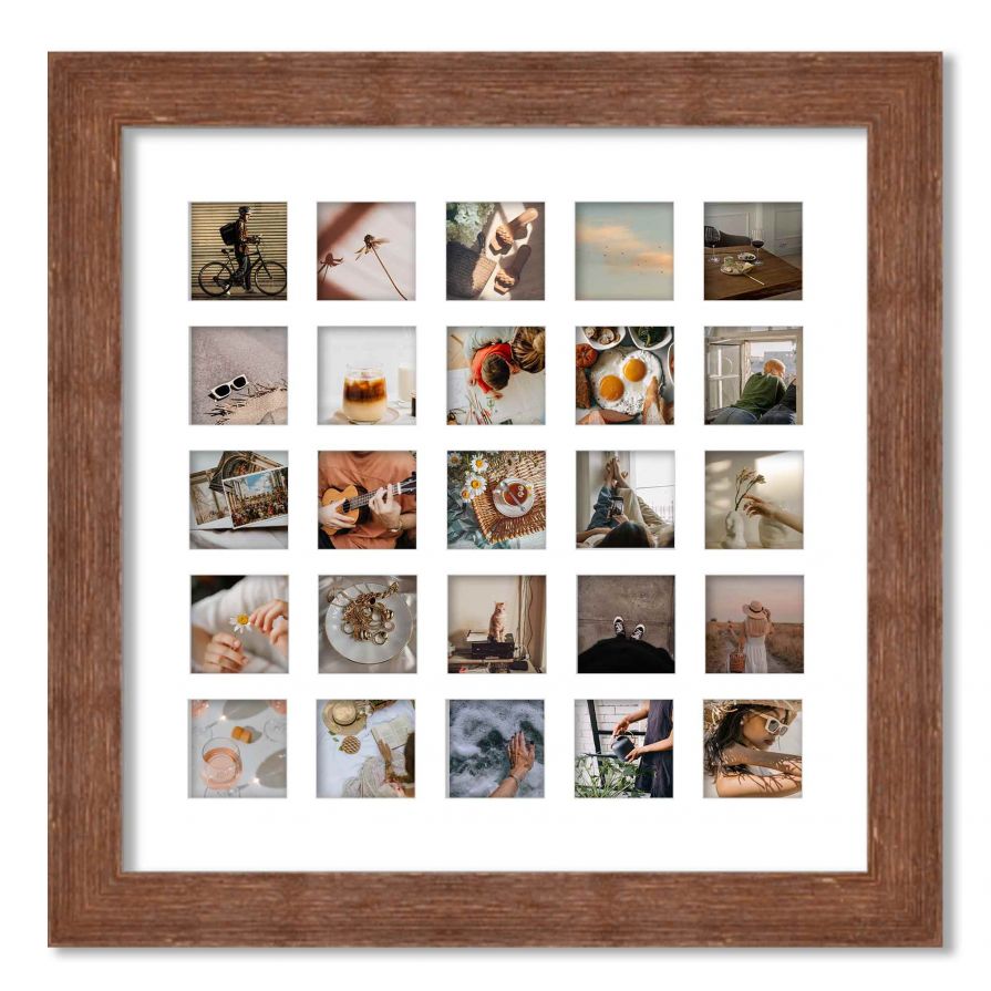 Product Name Brown Barnwood Matted Instagram Photo Frame for 25 Photos