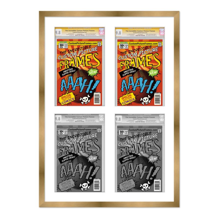 Product Name Gold 2x2 Graded Comic Book Frame for 4 Comic Books with White Mat