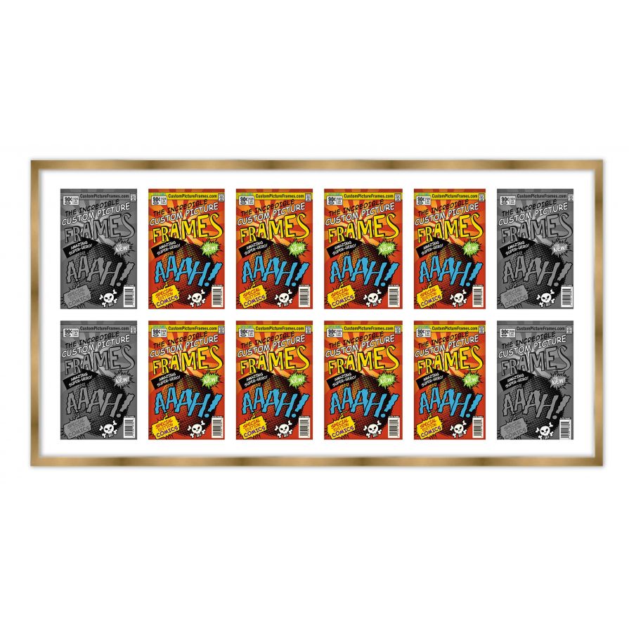 Gold Comic Book Frame for 12 Comic Books with White Mat for Bronze Age (Published Between 1970 and 1985) Comic Books