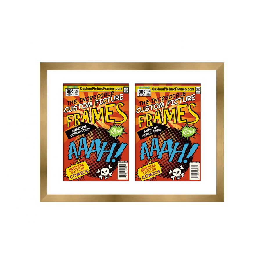 Gold Comic Book Frame for 2 Comic Books with White Mat for Golden Age (Published Between 1938 and 1956) Comic Books