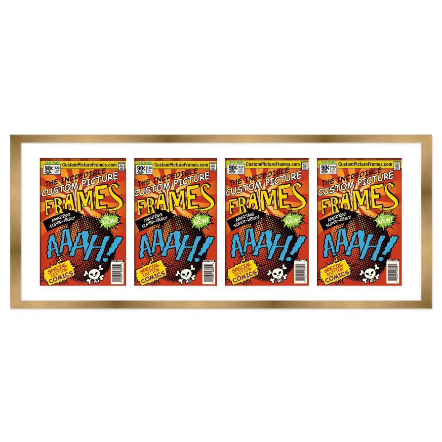 Gold Comic Book Frame for 4 Comic Books with White Mat for Current Era (Published After 1985) Comic Books