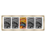 Share your comic collection by putting your comic books on display in a high-quality wood frame. Includes nesting foam to snuggly and securely hold your comic books in place. This frame features a gold finish and your choice of black or white acid-free matting to display 5 comic books. Also included are a UV-resistant acrylic protective front, foam board backing, easel stand, and wall hanging hardware. This frame displays five Bronze Age (Published Between 1970 and 1985) comic books measuring 7.25x10.5 inches, Golden Age (Published Between 1938 and 1956) comic books measuring 7.75x10.5 inches, Silver Age (Published Between 1956 and 1970) comic books measuring 7.125x10.5 inches or Current Era (Published After 1985) comic books measuring 6.875x10.5 inches. This moulding is 0.75 inches wide. The overall dimensions of this frame are 45.5x15.5 inches. Includes nesting foam to snuggly and securely hold your comic books in place. This comic book frame for your Bronze, Golden, Silver or Current comic books makes a great gift or addition to your home or office! Display your prized comic book collection in style with a handcrafted frame by Custom Picture Frames.