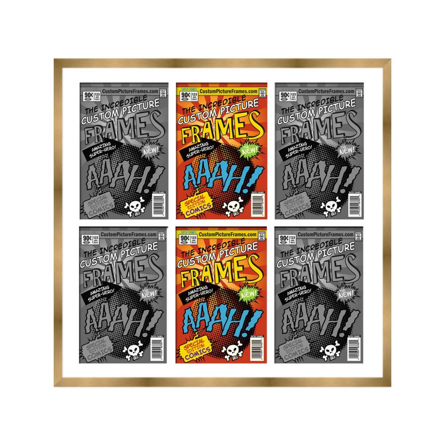 Gold Comic Book Frame for 6 Comic Books with White Mat for Silver Age (Published Between 1956 and 1970) Comic Books