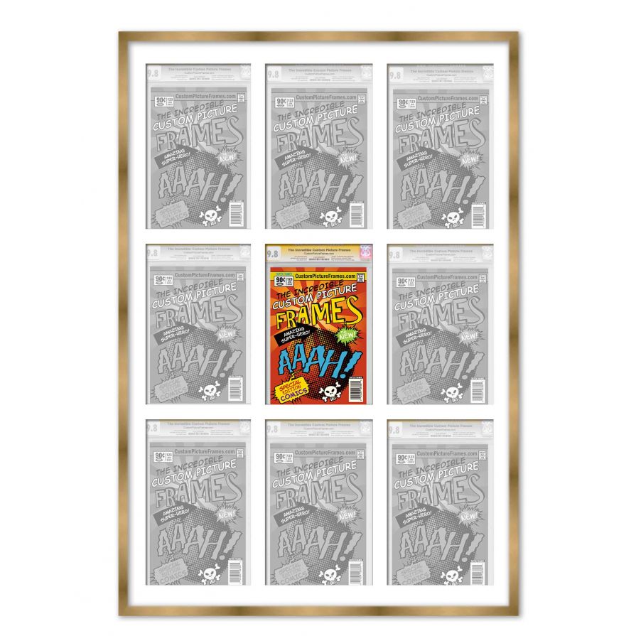 Product Name Gold Graded Comic Book Frame for 9 Comic Books with White Mat
