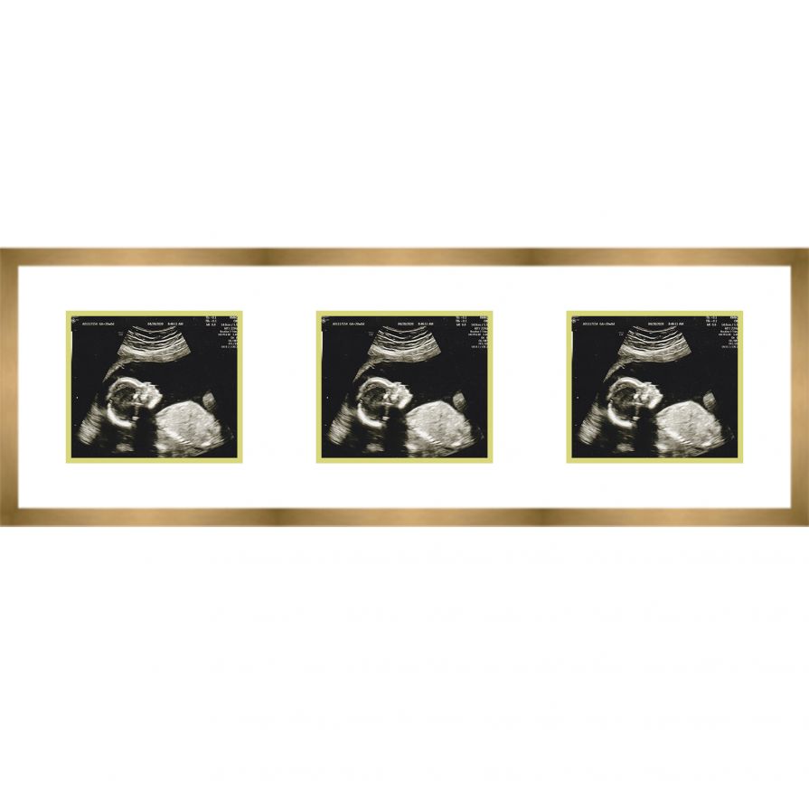 Our gold sonogram frame with 3 openings makes a great gift or addition to your home or nursery! Display your special news in style with a handcrafted frame by Custom Picture Frames.