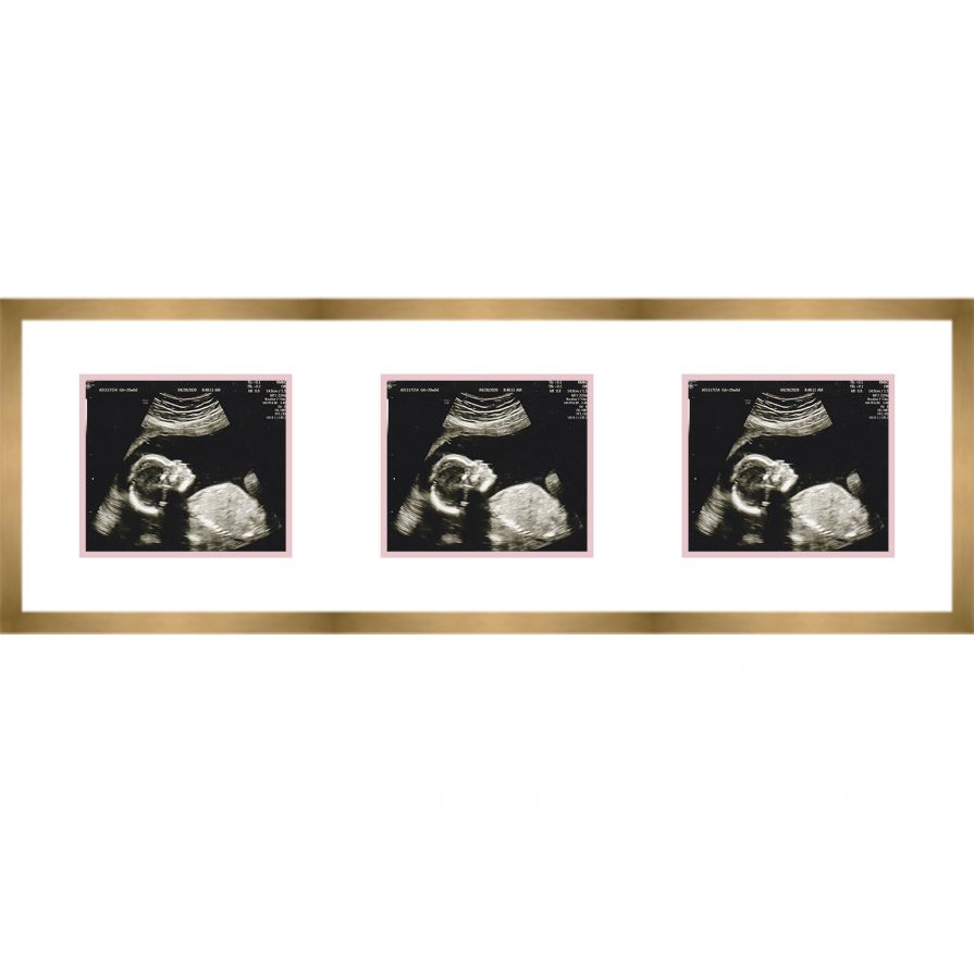 Gold Sonogram Frame with White on Pink Double Mats for 3 Images
