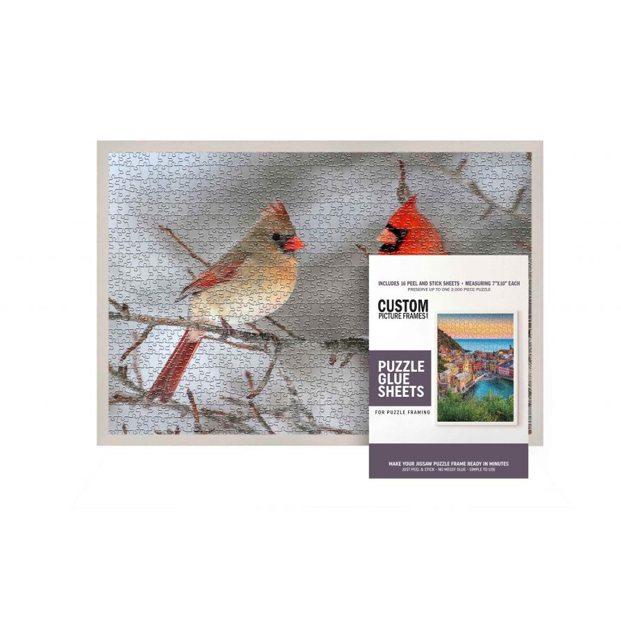 Made of solid wood, this whitewashed backloading jigsaw puzzle frame includes UV-resistant acrylic to protect and preserve your puzzle, foam board backing, wall hanging hardware and puzzle glue sheets. Install the hanging hardware to display this puzzle frame vertically or horizontally.