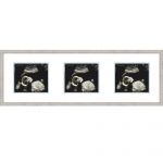 This frame features a rustic white finish and double acid-free matting and includes a UV-resistant acrylic protective front, foam board backing, easel stand, and wall hanging hardware. The double mat design features a white mat on top of your choice of white, pink, blue, yellow and green. This sonogram frame fits three sonograms or ultrasound pictures measuring 4x3 inches with the mats. The mat opening measures 3.5x2.5 inches. This Kingsley White moulding is 0.75 inches wide. The overall dimensions of this frame are 17.5x6.5 inches.