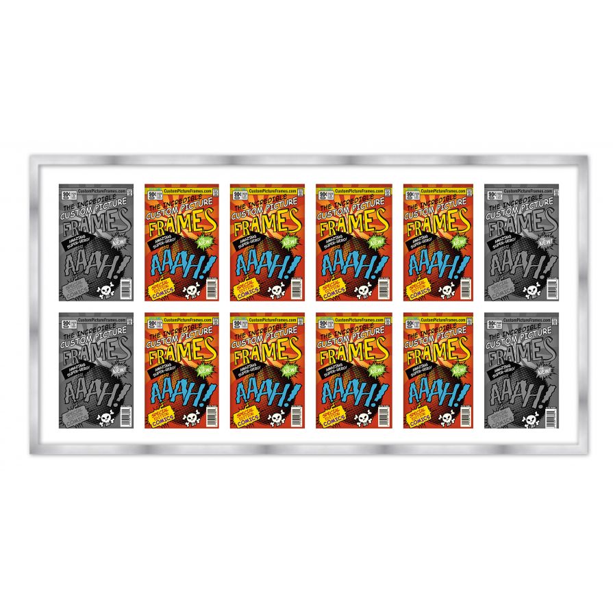 Silver Comic Book Frame for 12 Comic Books with White Mat for Bronze Age (Published Between 1970 and 1985) Comic Books