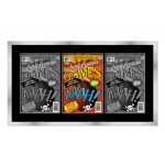 Share your comic collection by putting your comic books on display in a high-quality wood frame. Includes nesting foam to snuggly and securely hold your comic books in place. This frame features a silver finish and your choice of black or white acid-free matting to display 3 comic books. Also included are a UV-resistant acrylic protective front, foam board backing, easel stand, and wall hanging hardware. This frame displays three Bronze Age (Published Between 1970 and 1985) comic books measuring 7.25x10.5 inches, Golden Age (Published Between 1938 and 1956) comic books measuring 7.75x10.5 inches, Silver Age (Published Between 1956 and 1970) comic books measuring 7.125x10.5 inches or Current Era (Published After 1985) comic books measuring 6.875x10.5 inches. This moulding is 0.75 inches wide. The overall dimensions of this frame are 30.25x15.5 inches. Includes nesting foam to snuggly and securely hold your comic books in place. This triple comic book frame for your Bronze, Golden, Silver or Current comic books makes a great gift or addition to your home or office! Display your prized comic book collection in style with a handcrafted frame by Custom Picture Frames.