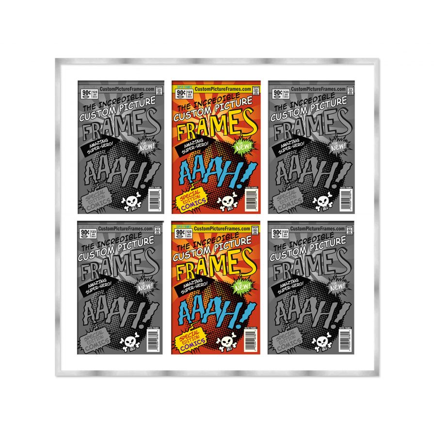 Silver Comic Book Frame for 6 Comic Books with White Mat for Current Age Comic Books
