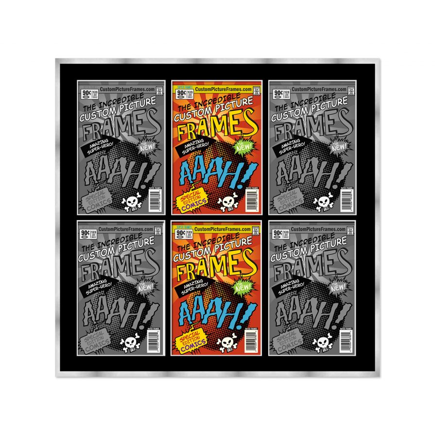 Silver Comic Book Frame for 6 Comic Books with Black Mat for Silver Age (Published Between 1956 and 1970) Comic Books