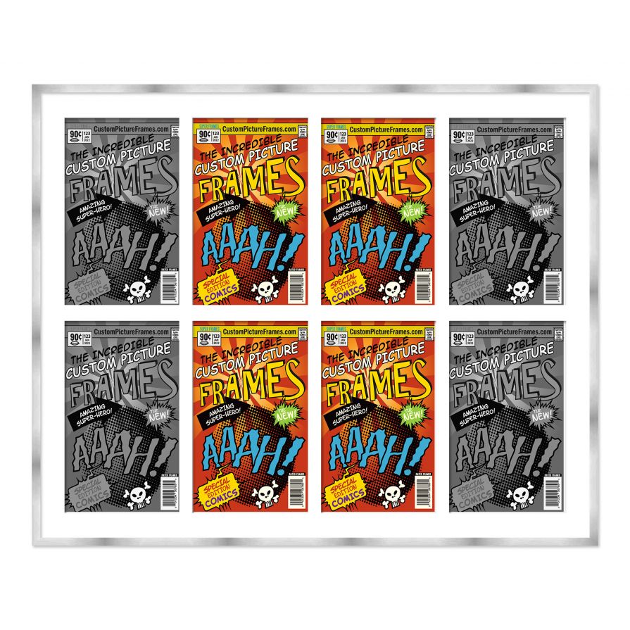 Silver Comic Book Frame for 8 Comic Books with White Mat for Current Age Comic Books