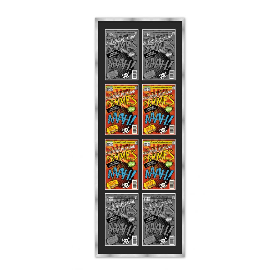 Silver Comic Book Frame for 8 Comic Books with Black Mat for Current Age Comic Books