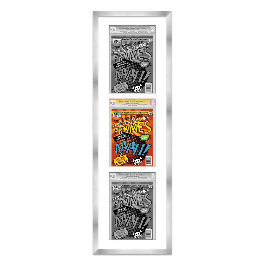 Silver Graded Comic Book Frame for 3 Comic Books with White Mat