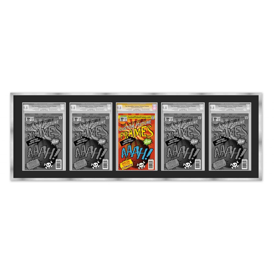 Silver Graded Comic Book Frame for 5 Comic Books with Black Mat