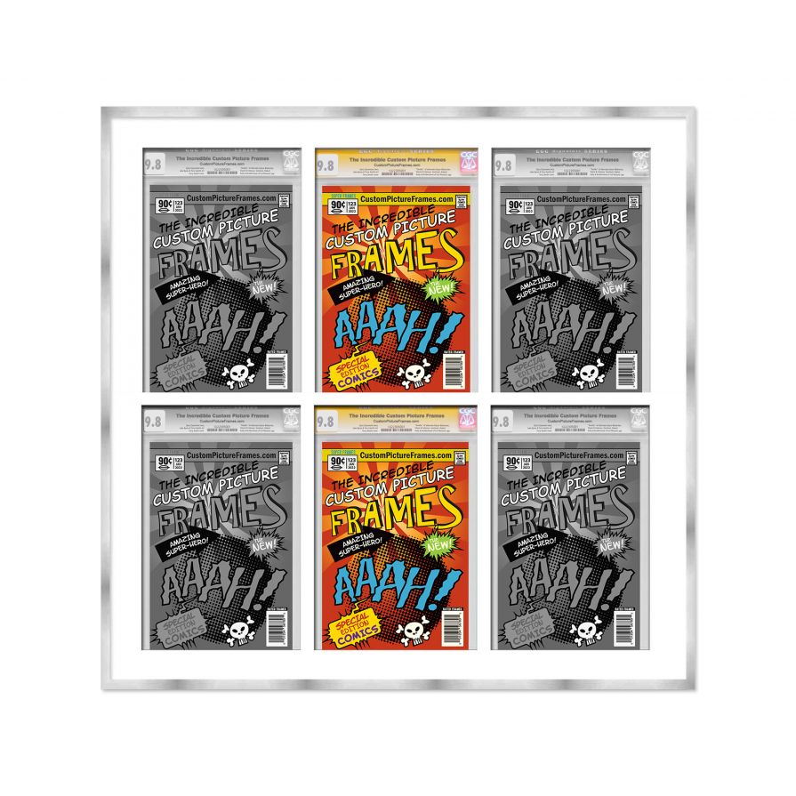 Silver Graded Comic Book Frame for 6 Comic Books with White Mat