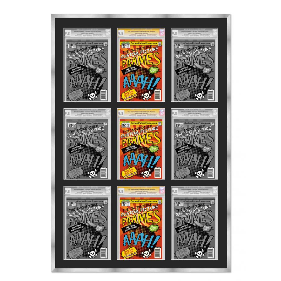 Product Name Silver Graded Comic Book Frame for 9 Comic Books with Black Mat