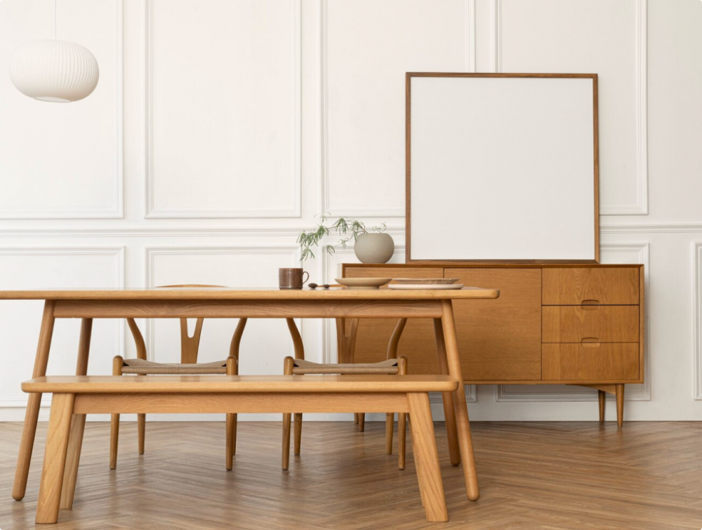Keep your frames simple and neutral to allow the art to stand out. Think sleek, minimal and natural to coordinate with your functional furniture and complement the fabrics and textures in your Scandanavian space.